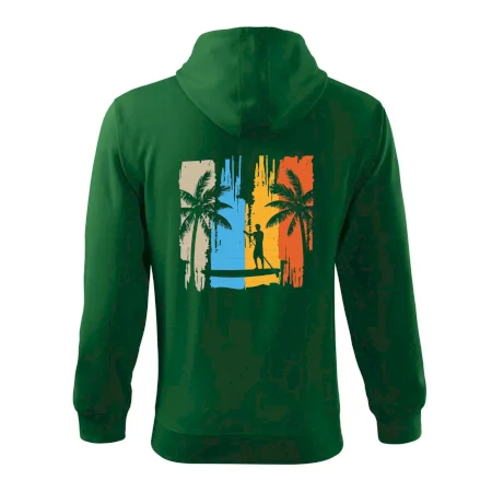 Pánská mikina MALFINI Trendy Zipper 410 je dokonalou kombinací moderního designu, funkčnosti a pohodlí, ideální pro každodenní nošení, práci nebo volný čas. Vyrobena z kvalitní směsi 65 % bavlny a 35 % polyesteru (u barvy 12: 85 % bavlna, 15 % viskóza) s gramáží 300 g/m² a počesanou vnitřní stranou typu Terry, která zajišťuje mimořádnou měkkost a teplo. Mikina má rovný střih s bočními švy, celopropínací kostěný zip a kapuci s podšívkou, kterou lze regulovat pomocí stahovací šňůrky. Vnitřní část průkrčníku je začištěna kontrastní páskou pro větší odolnost a estetiku. Praktické nakládané kapsy ve stylu „klokanky“ s ozdobným prošíváním a elastické lemy s 2:2 žebrovým úpletem obsahujícím 5 % elastanu zaručují perfektní přizpůsobení a pohodlí při pohybu. Vhodná pro potisk nebo výšivku, dostupná v široké škále barev a velikostí S-3XL.