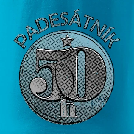 Nápis „PADESÁTNÍK“ varuje okolí: „Pozor, muž s patřičnou zkušeností, ale bez expirace!“ – platný na celý život, na rozdíl od té mince, co už dávno putovala do sbírky.