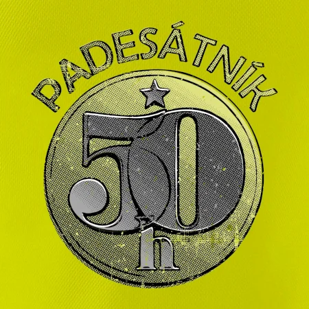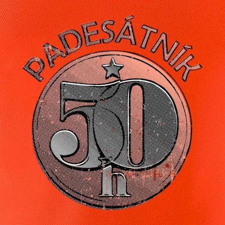 Nápis „PADESÁTNÍK“ varuje okolí: „Pozor, muž s patřičnou zkušeností, ale bez expirace!“ – platný na celý život, na rozdíl od té mince, co už dávno putovala do sbírky.
