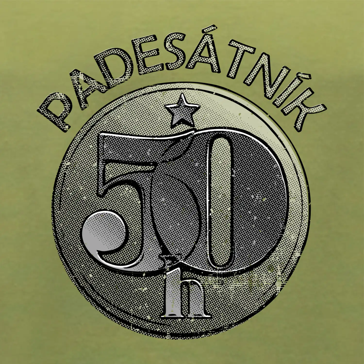 Nápis „PADESÁTNÍK“ varuje okolí: „Pozor, muž s patřičnou zkušeností, ale bez expirace!“ – platný na celý život, na rozdíl od té mince, co už dávno putovala do sbírky.