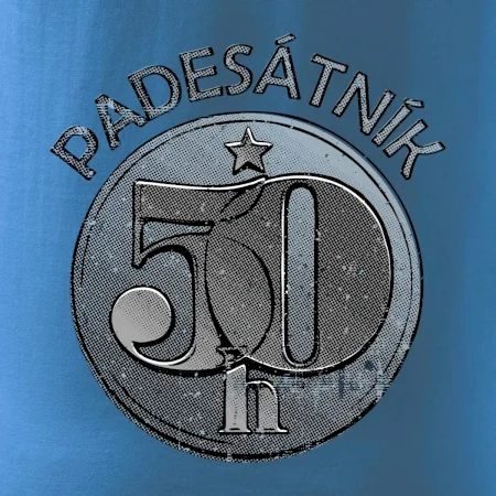 Nápis „PADESÁTNÍK“ varuje okolí: „Pozor, muž s patřičnou zkušeností, ale bez expirace!“ – platný na celý život, na rozdíl od té mince, co už dávno putovala do sbírky.