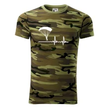 Tričko střední gramáže v barvách camouflage. Střih s bočními švy. Lem průkrčníku ze žebrového úpletu s přídavkem 5 % elastanu. Vnitřní část zadního průkrčníku začištěna páskou v barvě camouflage.
