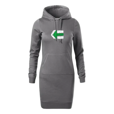 Dámské mikinové šaty MALFINI Snap 419 jsou ideální volbou pro ženy, které hledají pohodlný a stylový kousek pro volný čas nebo každodenní nošení. Lehce vypasovaný střih s bočními švy podtrhuje ženskou siluetu, zatímco kapuce s podšívkou a stahovací šňůrkou dodává ležérní vzhled. Šaty mají délku nad kolena a jsou vybaveny nakládanou kapsou ve stylu „klokanky“. Materiál je měkký a příjemný na dotek díky směsi bavlny a polyesteru s nepočesanou vnitřní stranou.