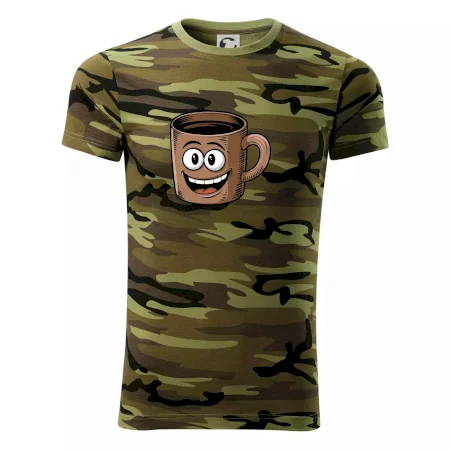 Tričko střední gramáže v barvách camouflage. Střih s bočními švy. Lem průkrčníku ze žebrového úpletu s přídavkem 5 % elastanu. Vnitřní část zadního průkrčníku začištěna páskou v barvě camouflage.