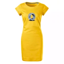 Trendové dámské triko s velmi krátkým rukávem, volnějšího střihu, v dolním kraji všité do širokého lemu. Kulatý průkrčník s úzkým lemem ze shodného materiálu.