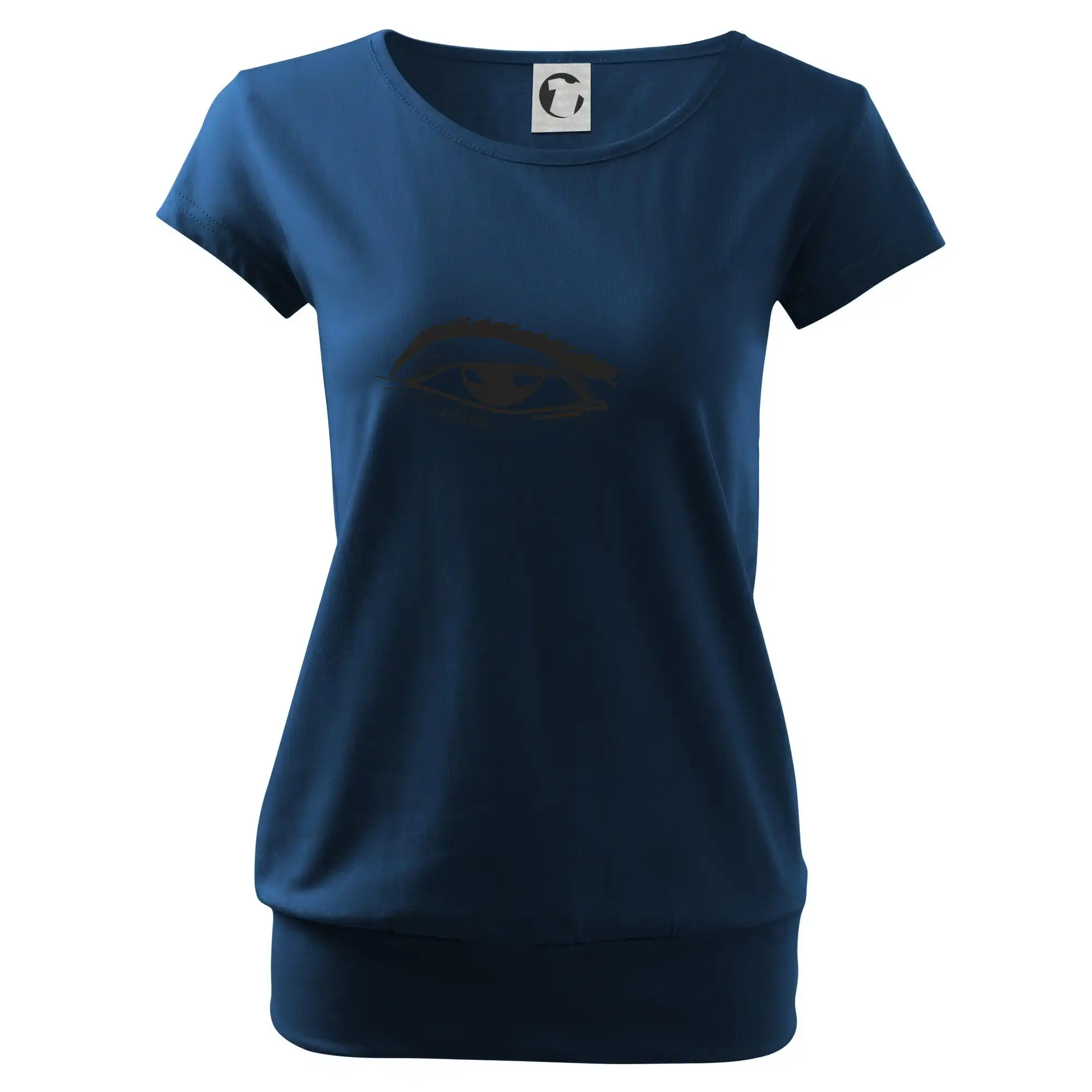 Trendové dámské triko s velmi krátkým rukávem, volnějšího střihu, v dolním kraji všité do širokého lemu. Kulatý průkrčník s úzkým lemem ze shodného materiálu.