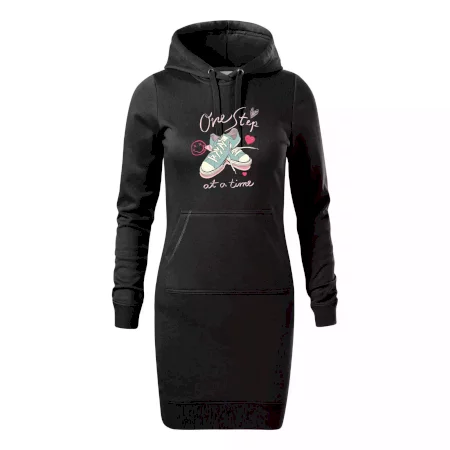 Dámské mikinové šaty MALFINI Snap 419 jsou ideální volbou pro ženy, které hledají pohodlný a stylový kousek pro volný čas nebo každodenní nošení. Lehce vypasovaný střih s bočními švy podtrhuje ženskou siluetu, zatímco kapuce s podšívkou a stahovací šňůrkou dodává ležérní vzhled. Šaty mají délku nad kolena a jsou vybaveny nakládanou kapsou ve stylu „klokanky“. Materiál je měkký a příjemný na dotek díky směsi bavlny a polyesteru s nepočesanou vnitřní stranou.
