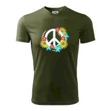 Triko se symbolem květinových dětí hippies. Hippies tričko na kterém jsou květy. Květinové tričko je vhodný dárek pro příznivce hippies. Pořiď si tohle triko a buď pravé květinové dítě.