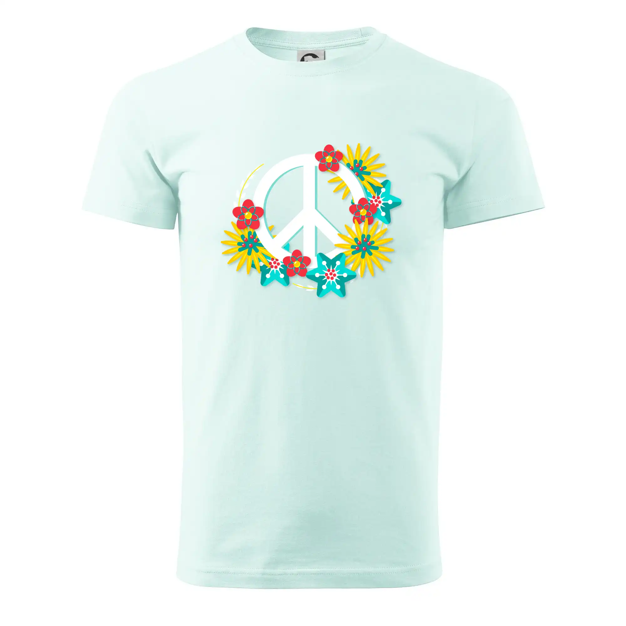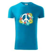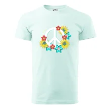 Triko se symbolem květinových dětí hippies. Hippies tričko na kterém jsou květy. Květinové tričko je vhodný dárek pro příznivce hippies. Pořiď si tohle triko a buď pravé květinové dítě.