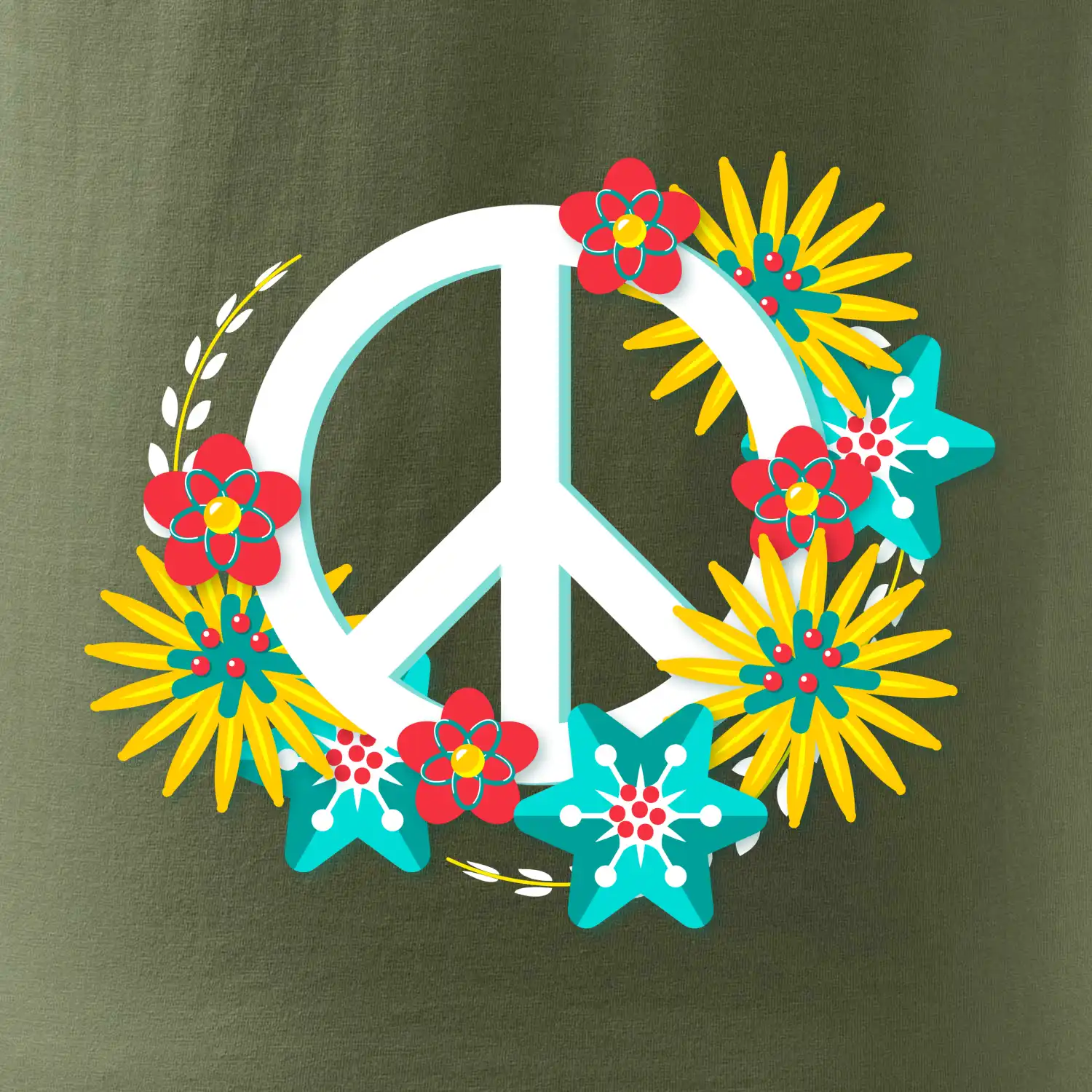 Triko se symbolem květinových dětí hippies. Hippies tričko na kterém jsou květy. Květinové tričko je vhodný dárek pro příznivce hippies. Pořiď si tohle triko a buď pravé květinové dítě.