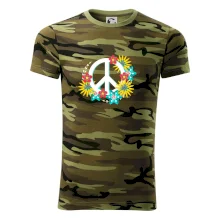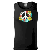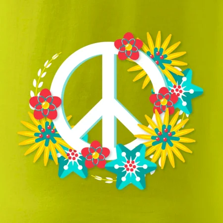 Triko se symbolem květinových dětí hippies. Hippies tričko na kterém jsou květy. Květinové tričko je vhodný dárek pro příznivce hippies. Pořiď si tohle triko a buď pravé květinové dítě.