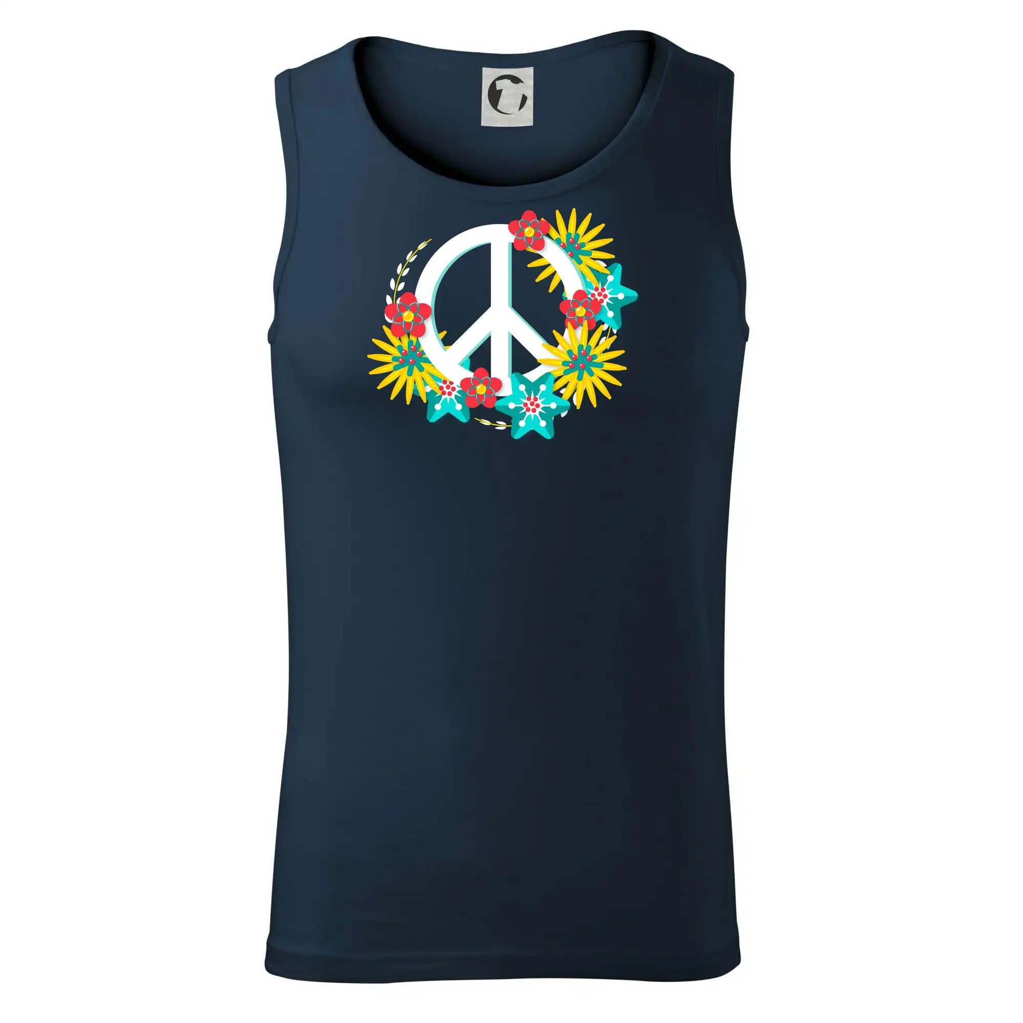 Triko se symbolem květinových dětí hippies. Hippies tričko na kterém jsou květy. Květinové tričko je vhodný dárek pro příznivce hippies. Pořiď si tohle triko a buď pravé květinové dítě.