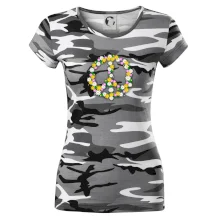 Triko se symbolem květinových dětí hippies. Hippies tričko na kterém jsou květiny. Květinové tričko je vhodný dárek pro příznivce hippies. Pořiď si tohle triko a buď pravé květinové dítě.