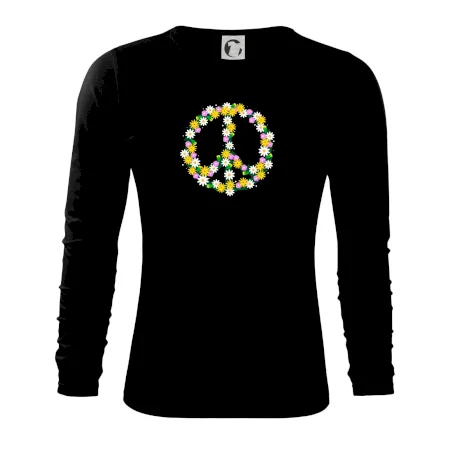 Triko se symbolem květinových dětí hippies. Hippies tričko na kterém jsou květiny. Květinové tričko je vhodný dárek pro příznivce hippies. Pořiď si tohle triko a buď pravé květinové dítě.