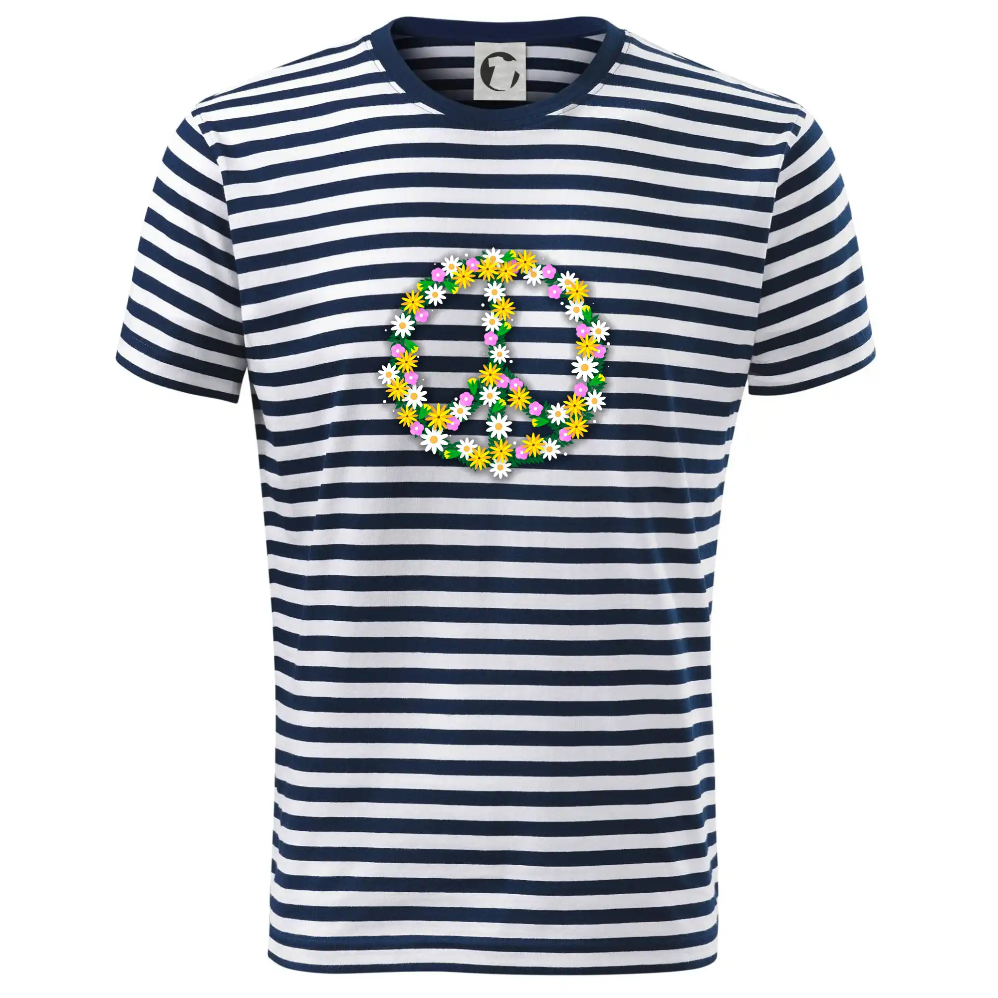 Triko se symbolem květinových dětí hippies. Hippies tričko na kterém jsou květiny. Květinové tričko je vhodný dárek pro příznivce hippies. Pořiď si tohle triko a buď pravé květinové dítě.