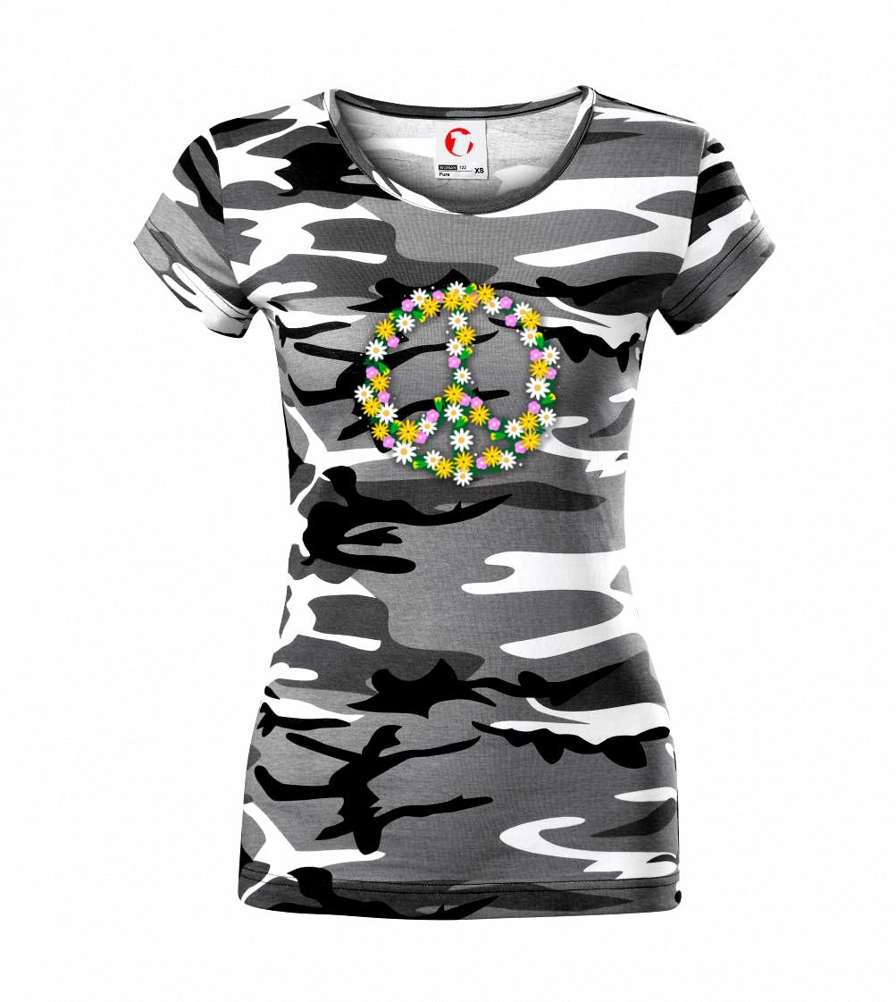 Triko se symbolem květinových dětí hippies. Hippies tričko na kterém jsou květiny. Květinové tričko je vhodný dárek pro příznivce hippies. Pořiď si tohle triko a buď pravé květinové dítě.