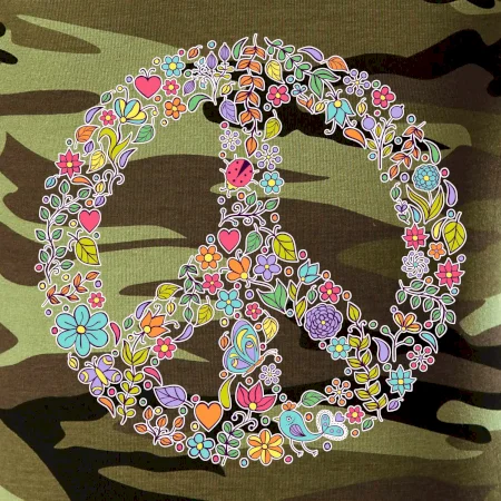Triko se symbolem květinových dětí hippies. Hippies tričko na kterém jsou květiny. Květinové tričko je vhodný dárek pro příznivce hippies. Pořiď si tohle triko a buď pravé květinové dítě.