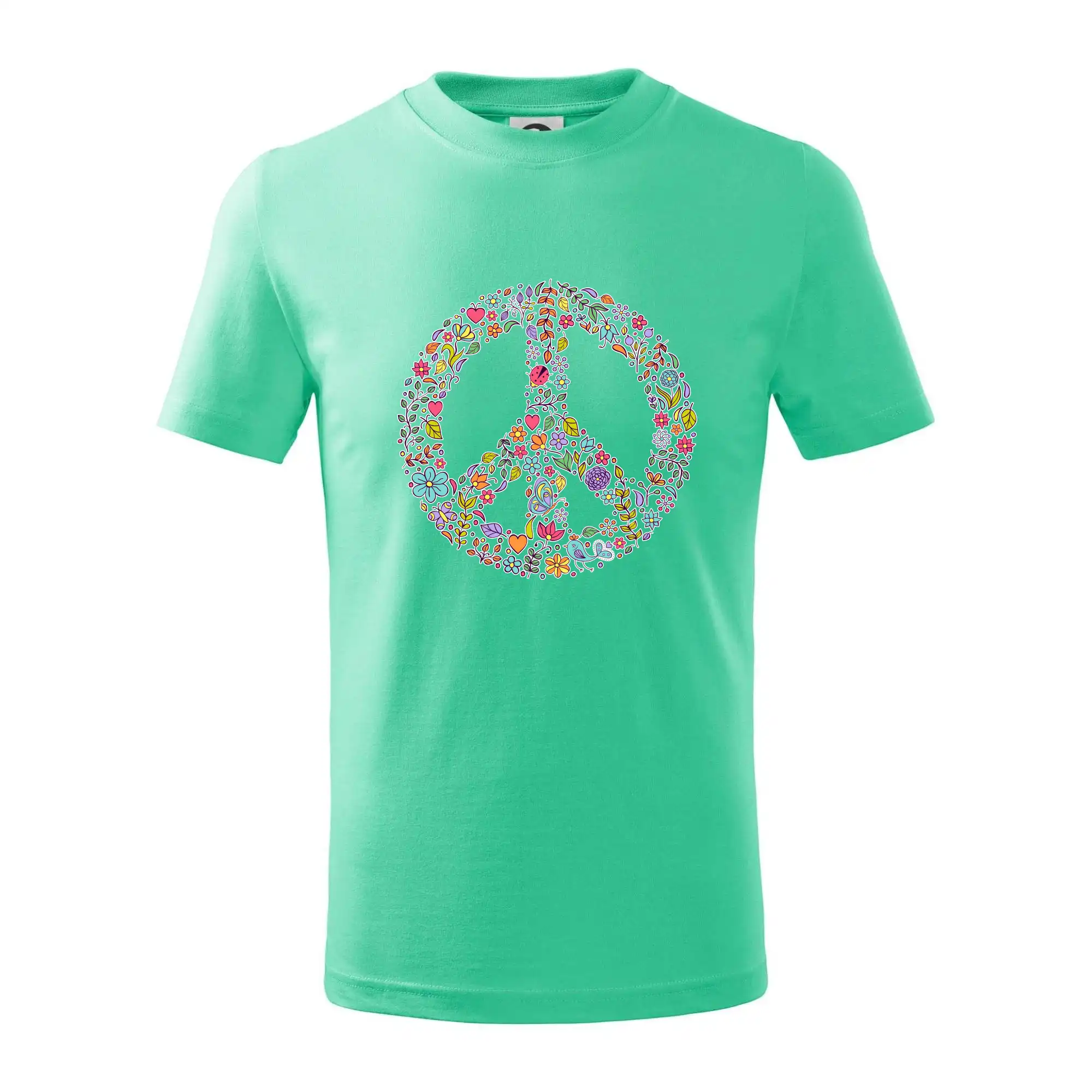 Triko se symbolem květinových dětí hippies. Hippies tričko na kterém jsou květiny. Květinové tričko je vhodný dárek pro příznivce hippies. Pořiď si tohle triko a buď pravé květinové dítě.