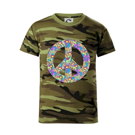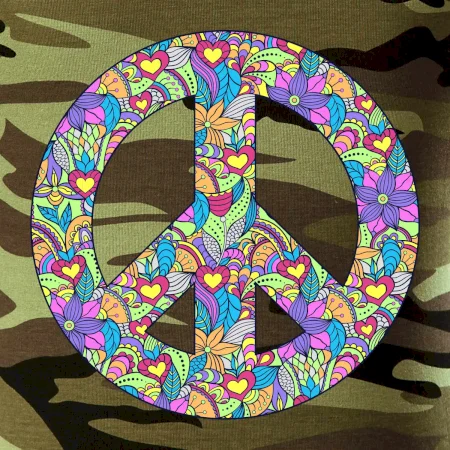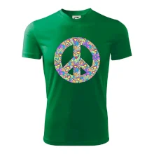 Triko se symbolem květinových dětí hippies. Hippies tričko na kterém jsou květy. Květinové tričko je vhodný dárek pro příznivce hippies. Pořiď si tohle triko a buď pravé květinové dítě.