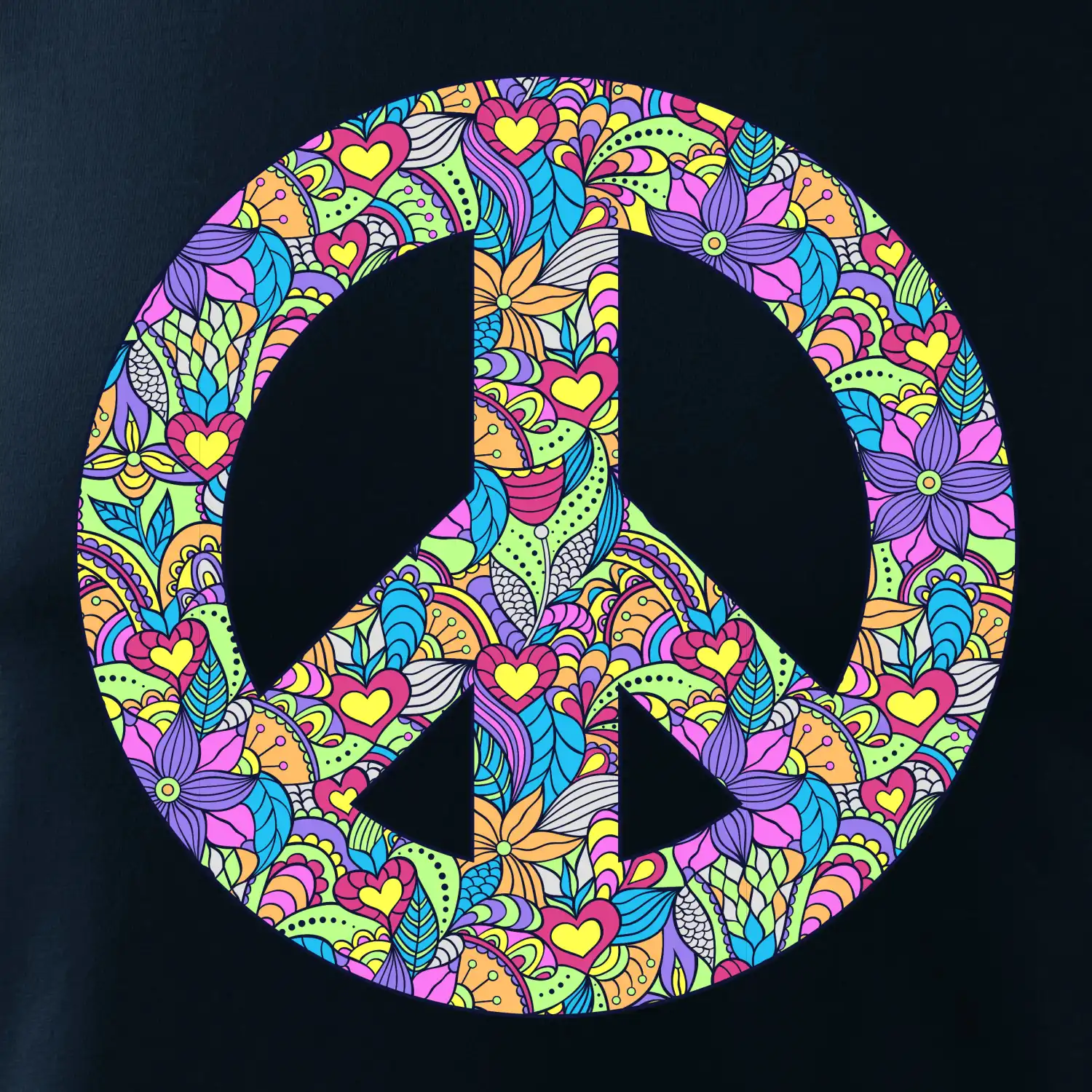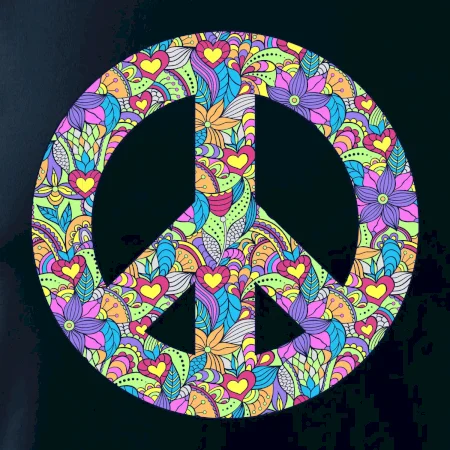 Triko se symbolem květinových dětí hippies. Hippies tričko na kterém jsou květy. Květinové tričko je vhodný dárek pro příznivce hippies. Pořiď si tohle triko a buď pravé květinové dítě.