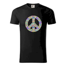 Triko se symbolem květinových dětí hippies. Hippies tričko na kterém jsou květy. Květinové tričko je vhodný dárek pro příznivce hippies. Pořiď si tohle triko a buď pravé květinové dítě.
