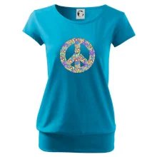 Triko se symbolem květinových dětí hippies. Hippies tričko na kterém jsou květy. Květinové tričko je vhodný dárek pro příznivce hippies. Pořiď si tohle triko a buď pravé květinové dítě.