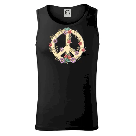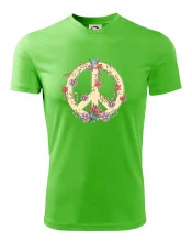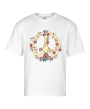 Triko se symbolem květinových dětí hippies. Hippies tričko na kterém jsou květiny. Květinové tričko je vhodný dárek pro příznivce hippies. Pořiď si tohle triko a buď pravé květinové dítě.