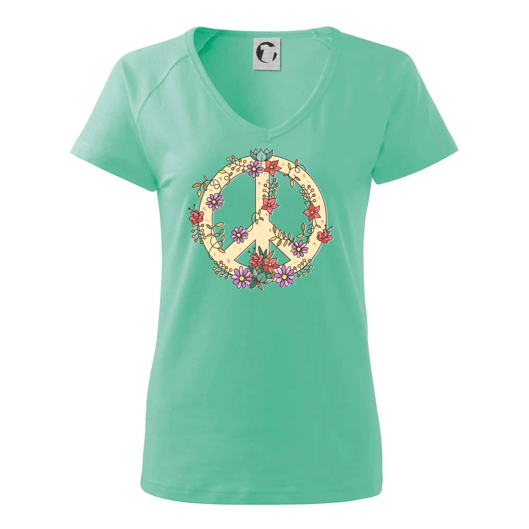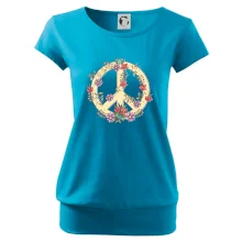 Triko se symbolem květinových dětí hippies. Hippies tričko na kterém jsou květiny. Květinové tričko je vhodný dárek pro příznivce hippies. Pořiď si tohle triko a buď pravé květinové dítě.