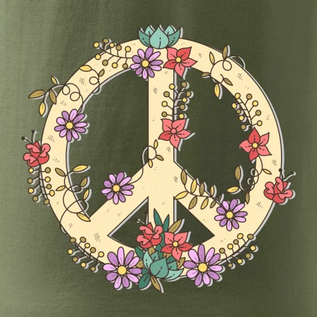 Triko se symbolem květinových dětí hippies. Hippies tričko na kterém jsou květiny. Květinové tričko je vhodný dárek pro příznivce hippies. Pořiď si tohle triko a buď pravé květinové dítě.