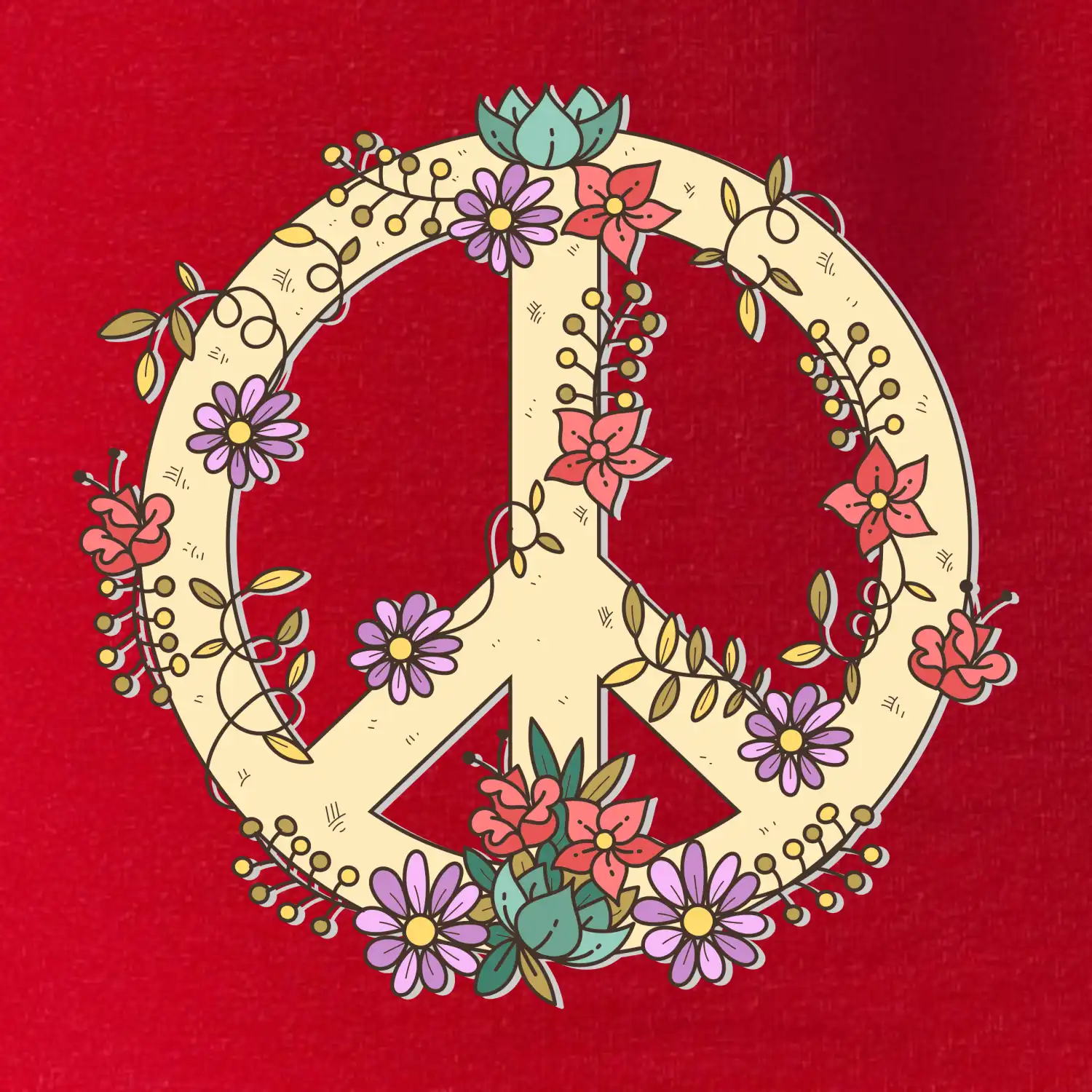 Triko se symbolem květinových dětí hippies. Hippies tričko na kterém jsou květiny. Květinové tričko je vhodný dárek pro příznivce hippies. Pořiď si tohle triko a buď pravé květinové dítě.