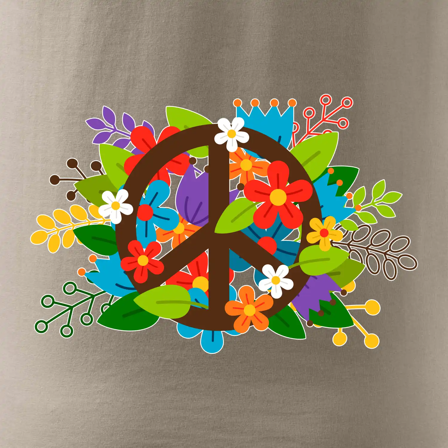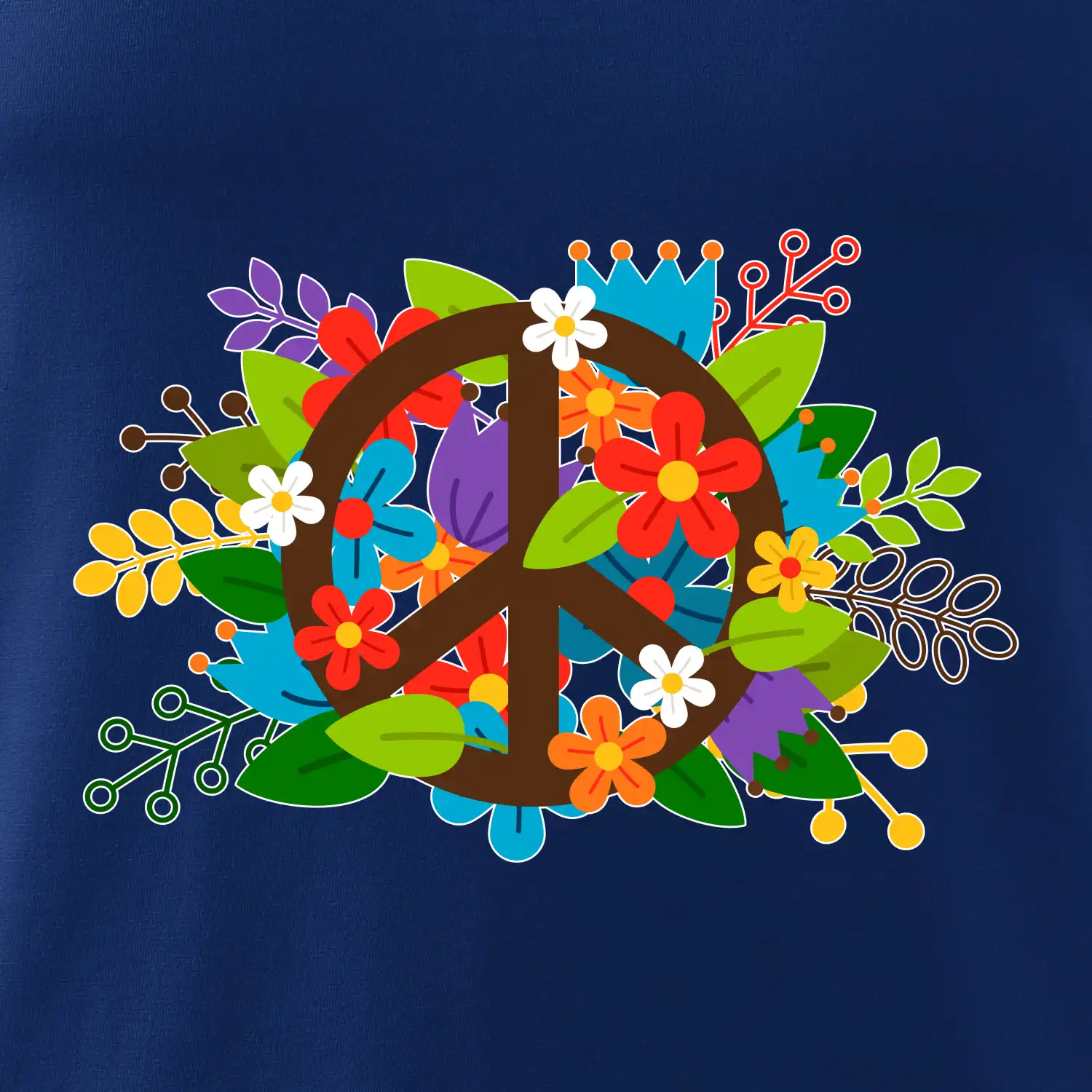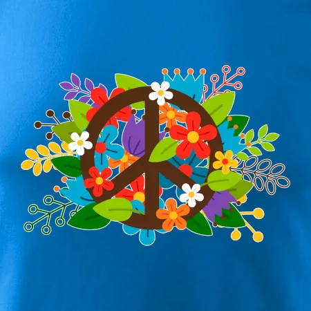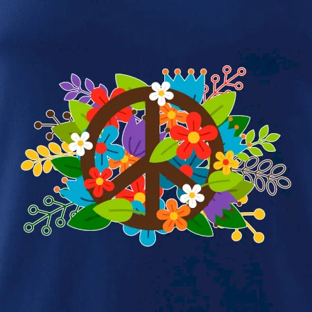 Triko se symbolem květinových dětí hippies. Hippies tričko na kterém jsou květiny. Květinové tričko je vhodný dárek pro příznivce hippies. Pořiď si tohle triko a buď pravé květinové dítě.
