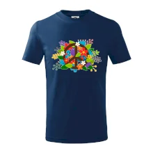 Triko se symbolem květinových dětí hippies. Hippies tričko na kterém jsou květiny. Květinové tričko je vhodný dárek pro příznivce hippies. Pořiď si tohle triko a buď pravé květinové dítě.