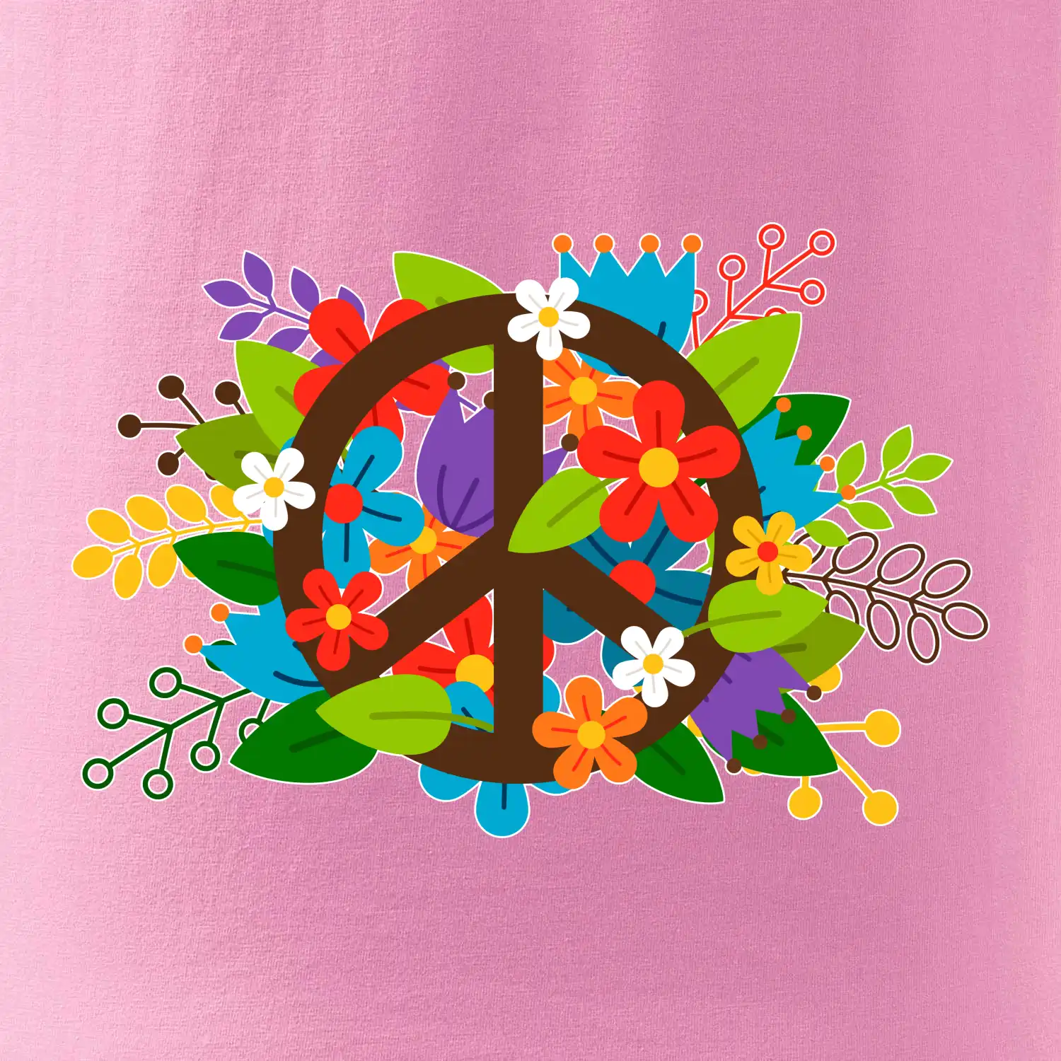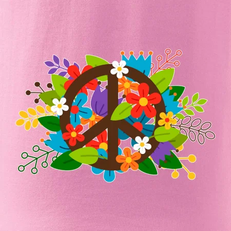 Triko se symbolem květinových dětí hippies. Hippies tričko na kterém jsou květiny. Květinové tričko je vhodný dárek pro příznivce hippies. Pořiď si tohle triko a buď pravé květinové dítě.
