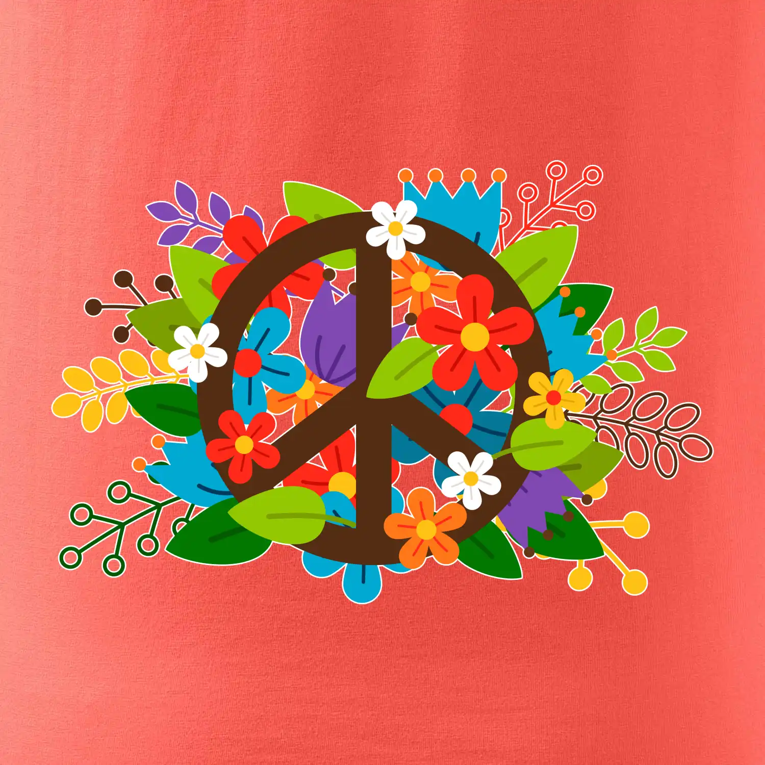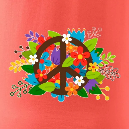 Triko se symbolem květinových dětí hippies. Hippies tričko na kterém jsou květiny. Květinové tričko je vhodný dárek pro příznivce hippies. Pořiď si tohle triko a buď pravé květinové dítě.