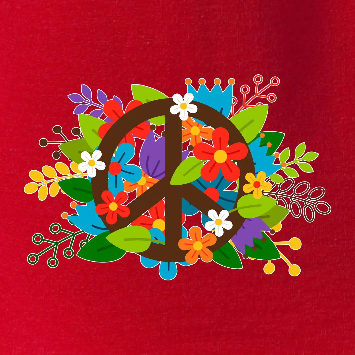 Triko se symbolem květinových dětí hippies. Hippies tričko na kterém jsou květiny. Květinové tričko je vhodný dárek pro příznivce hippies. Pořiď si tohle triko a buď pravé květinové dítě.