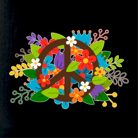 Triko se symbolem květinových dětí hippies. Hippies tričko na kterém jsou květiny. Květinové tričko je vhodný dárek pro příznivce hippies. Pořiď si tohle triko a buď pravé květinové dítě.