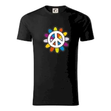 Triko se symbolem květinových dětí hippies. Hippies tričko na kterém je květina. Květinové tričko je vhodný dárek pro hippies.