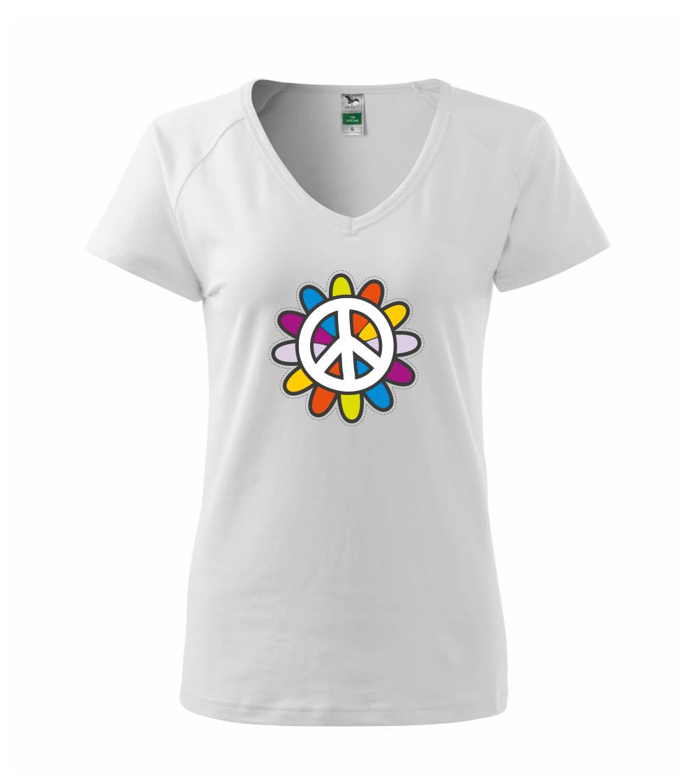 Triko se symbolem květinových dětí hippies. Hippies tričko na kterém je květina. Květinové tričko je vhodný dárek pro hippies.