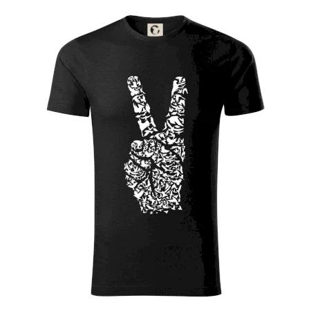 Všeobecně známý symbol pro mír, celosvětově známý symbol s dvěma zdviženými prsty.