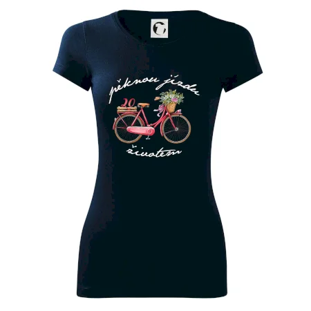 Narozeninové tričko pro ženu, která slaví 20 let, s motem "pěknou jízdu životem". Stylové jízdní kolo na triku jako dárek na 20 narozeniny pro ženu. Dárek pro kamarádku, která slaví jubileum 20 let.