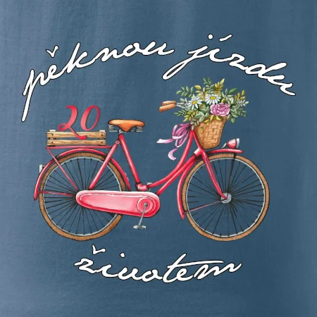 Narozeninové tričko pro ženu, která slaví 20 let, s motem "pěknou jízdu životem". Stylové jízdní kolo na triku jako dárek na 20 narozeniny pro ženu. Dárek pro kamarádku, která slaví jubileum 20 let.