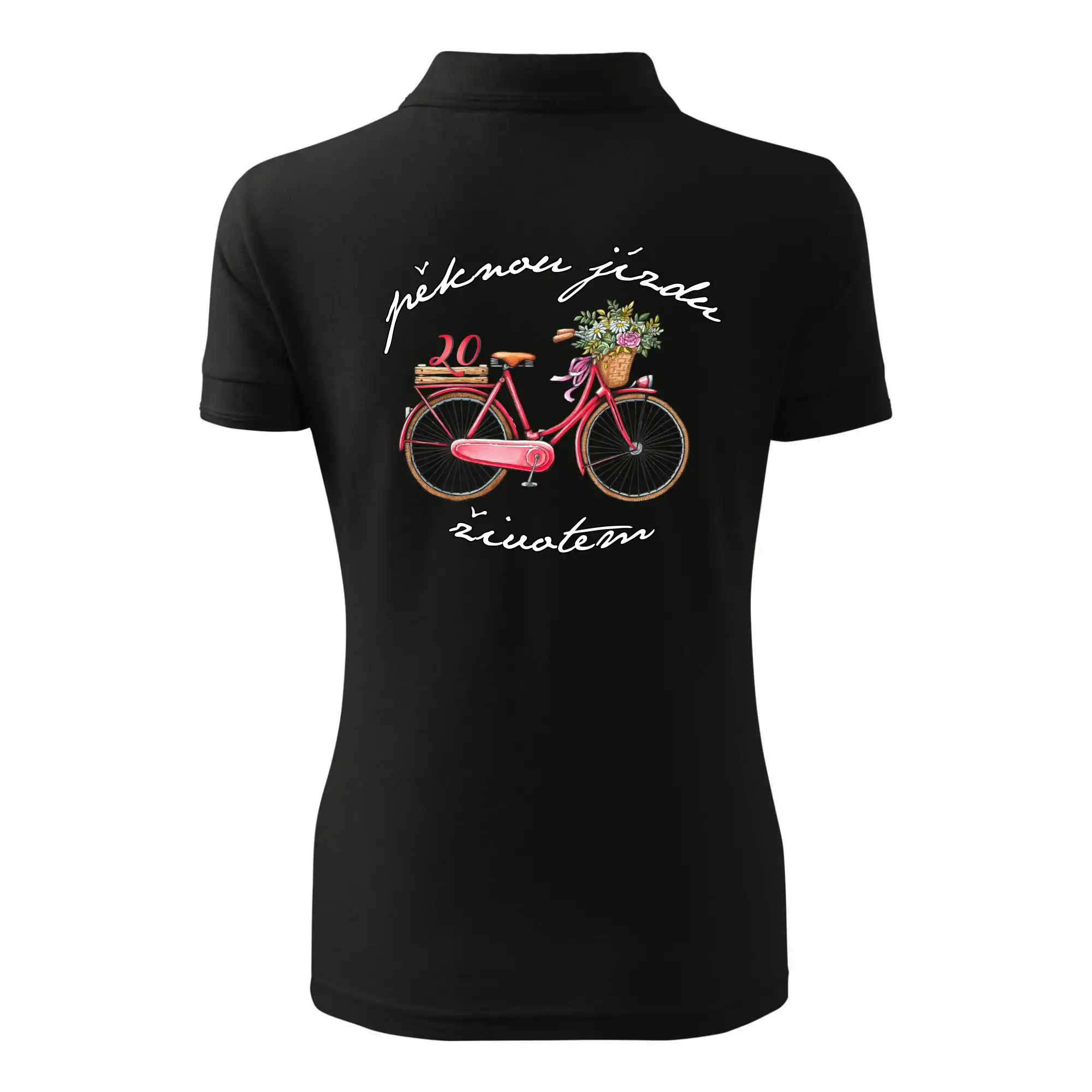 Narozeninové tričko pro ženu, která slaví 20 let, s motem "pěknou jízdu životem". Stylové jízdní kolo na triku jako dárek na 20 narozeniny pro ženu. Dárek pro kamarádku, která slaví jubileum 20 let.