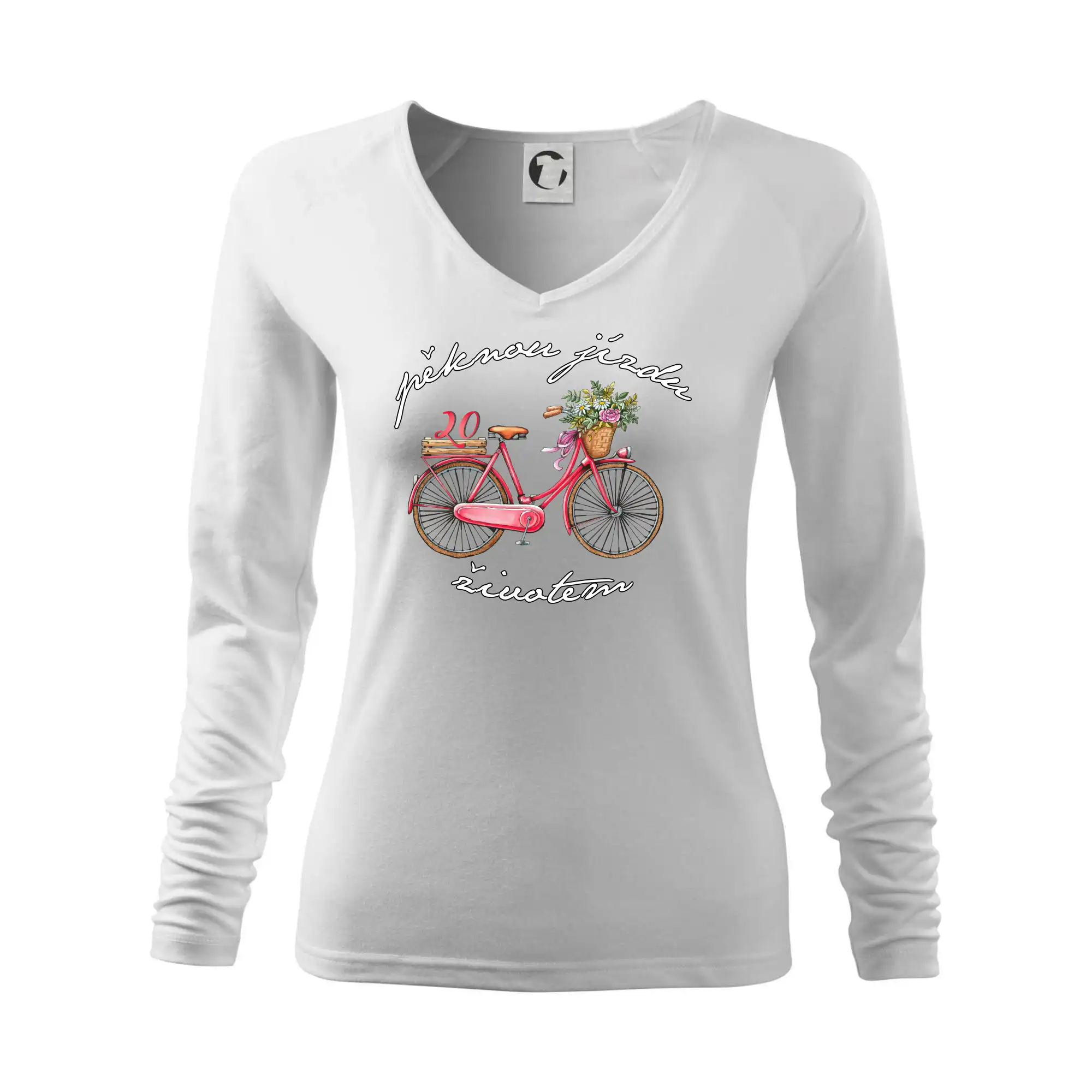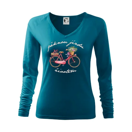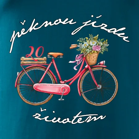 Narozeninové tričko pro ženu, která slaví 20 let, s motem "pěknou jízdu životem". Stylové jízdní kolo na triku jako dárek na 20 narozeniny pro ženu. Dárek pro kamarádku, která slaví jubileum 20 let.