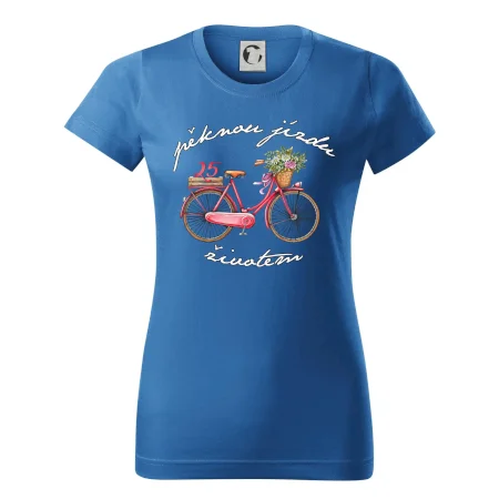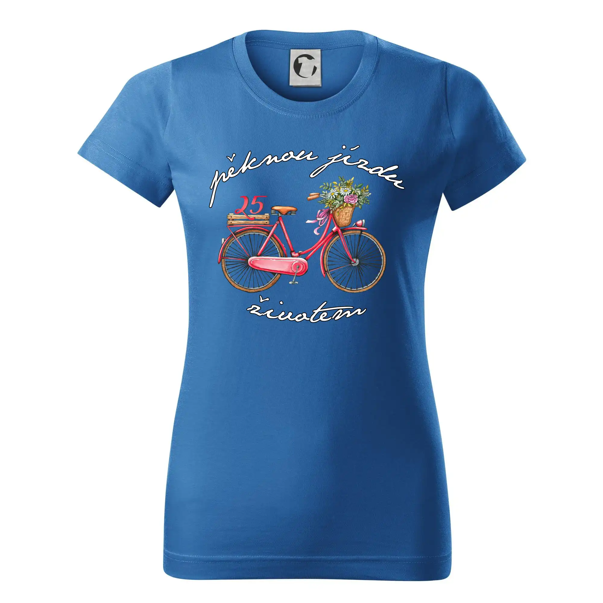 Narozeninové tričko pro ženu, která slaví 25 let, s motem "pěknou jízdu životem". Stylové jízdní kolo na triku jako dárek na 25 narozeniny pro ženu. Dárek pro kamarádku, která slaví jubileum 25 let.