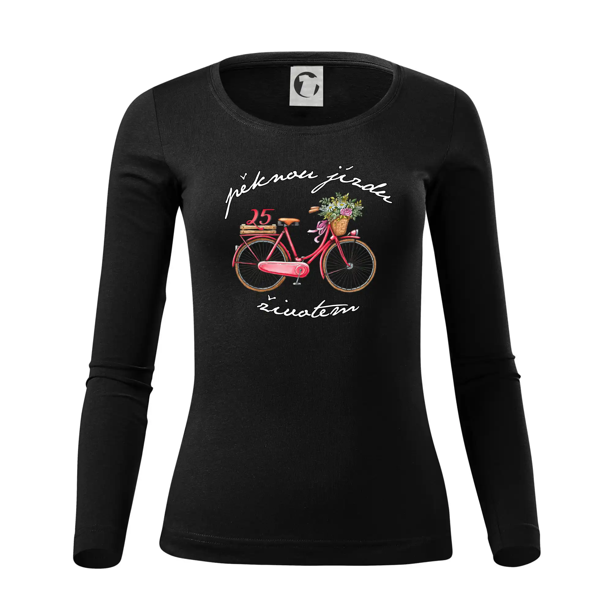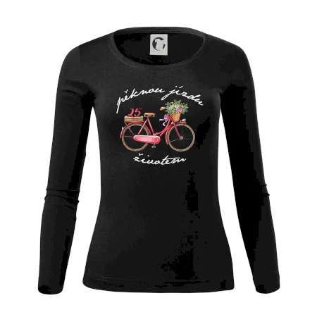 Narozeninové tričko pro ženu, která slaví 25 let, s motem "pěknou jízdu životem". Stylové jízdní kolo na triku jako dárek na 25 narozeniny pro ženu. Dárek pro kamarádku, která slaví jubileum 25 let.