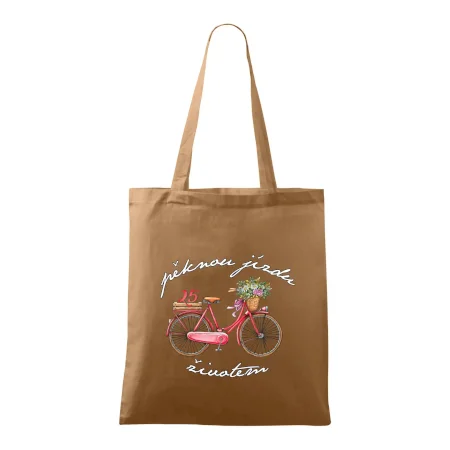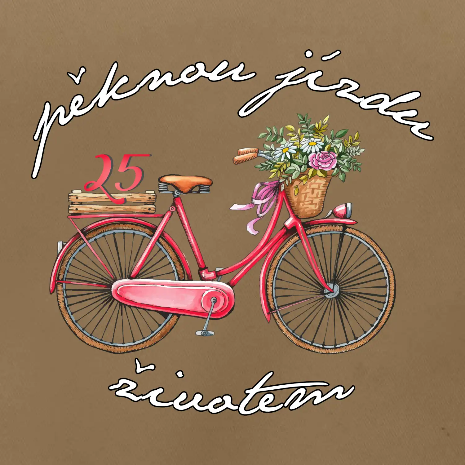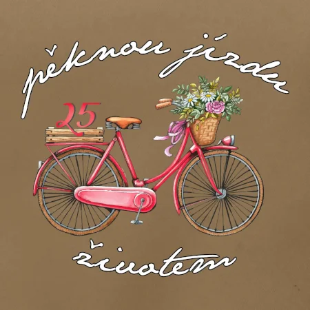 Narozeninové tričko pro ženu, která slaví 25 let, s motem "pěknou jízdu životem". Stylové jízdní kolo na triku jako dárek na 25 narozeniny pro ženu. Dárek pro kamarádku, která slaví jubileum 25 let.