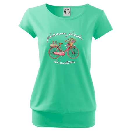 Narozeninové tričko pro ženu, která slaví 30 let, s motem "pěknou jízdu životem". Stylové jízdní kolo na triku jako dárek na 30 narozeniny pro ženu. Dárek pro kamarádku, která slaví jubileum 30 let.