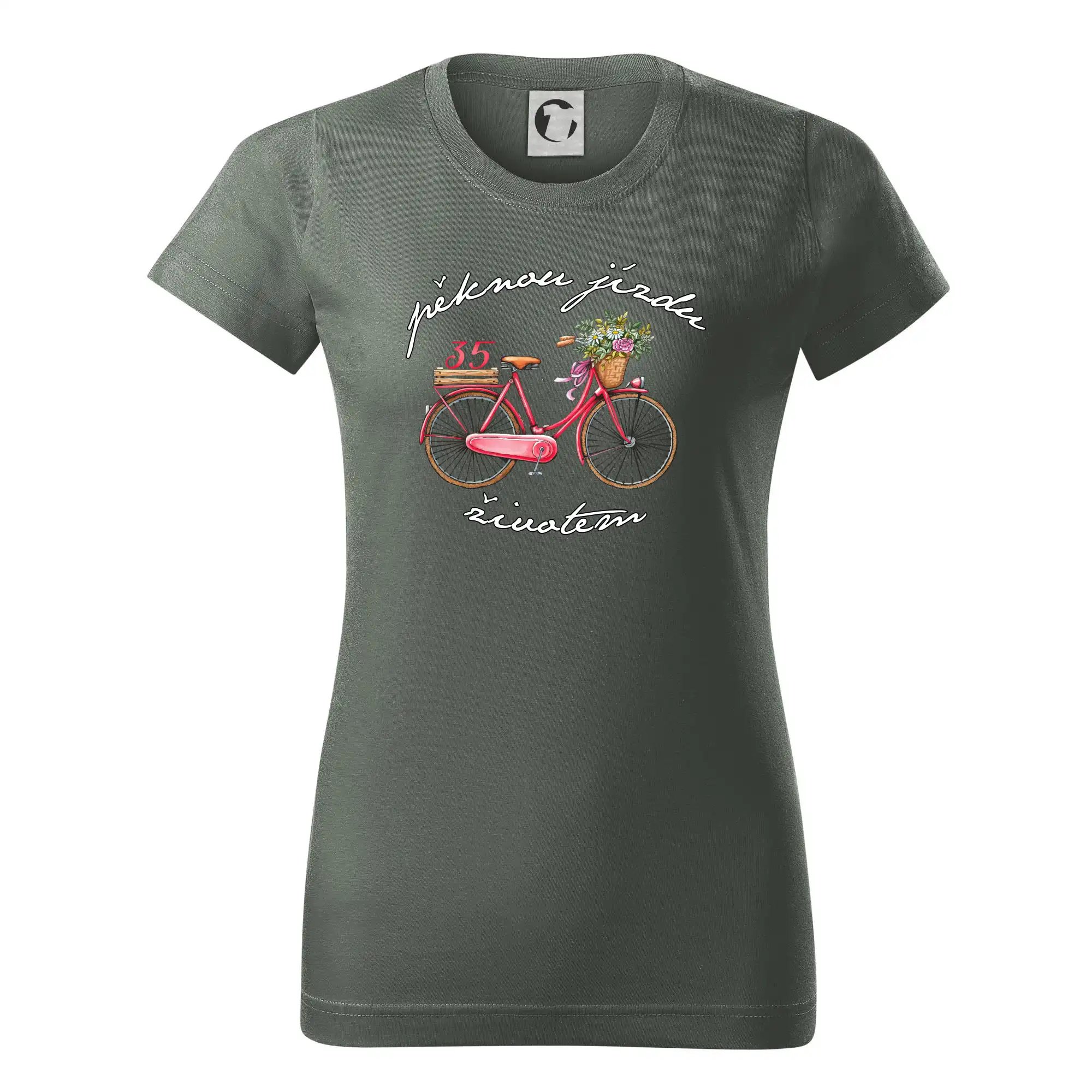 Narozeninové tričko pro maminku nebo tričko pro přítelkyni, která slaví 35 let, s motem "pěknou jízdu životem". Stylové jízdní kolo na triku jako dárek na 35 narozeniny pro ženu. Triko pro pro maminku, nebo triko pro přítelkyni která slaví jubileum 35 let.