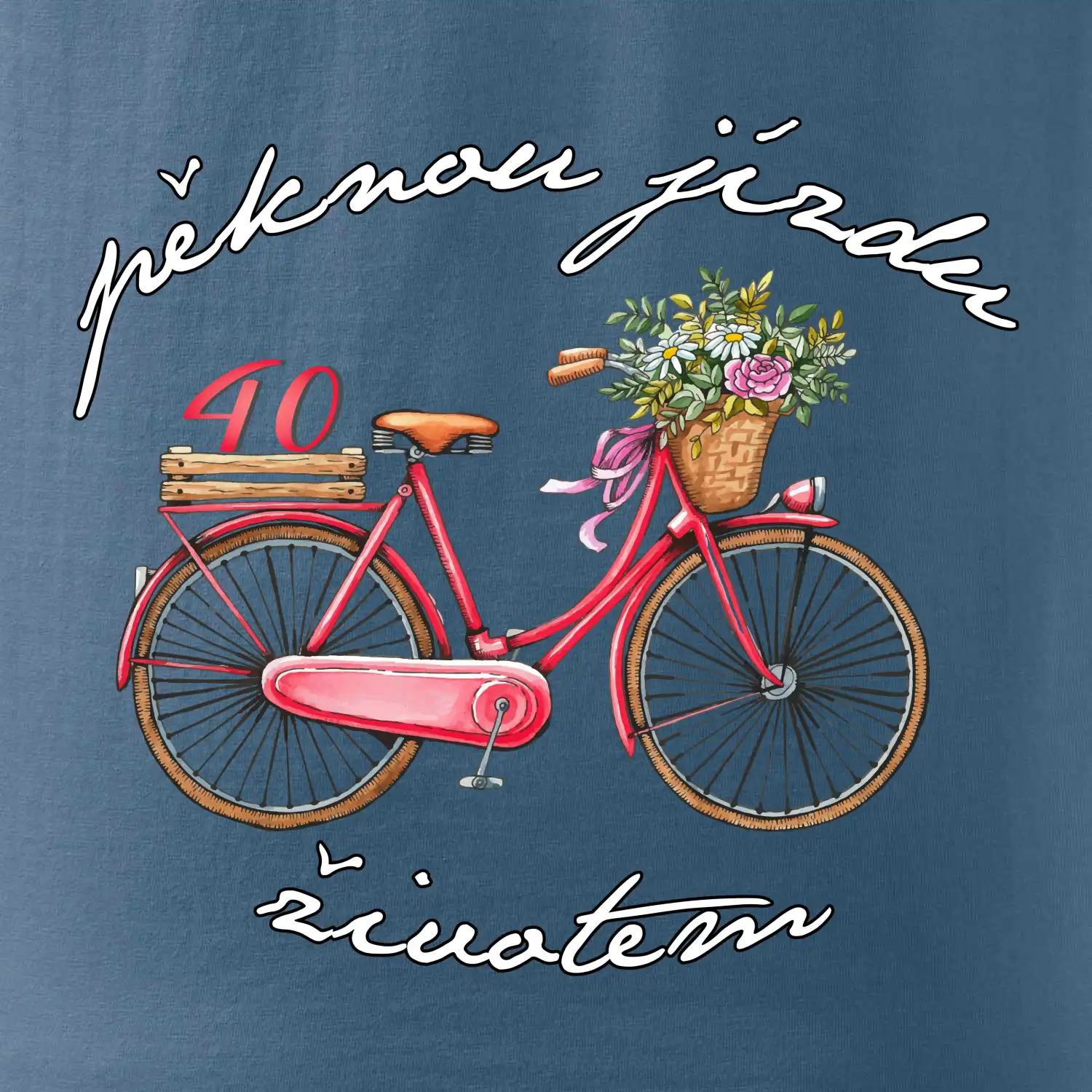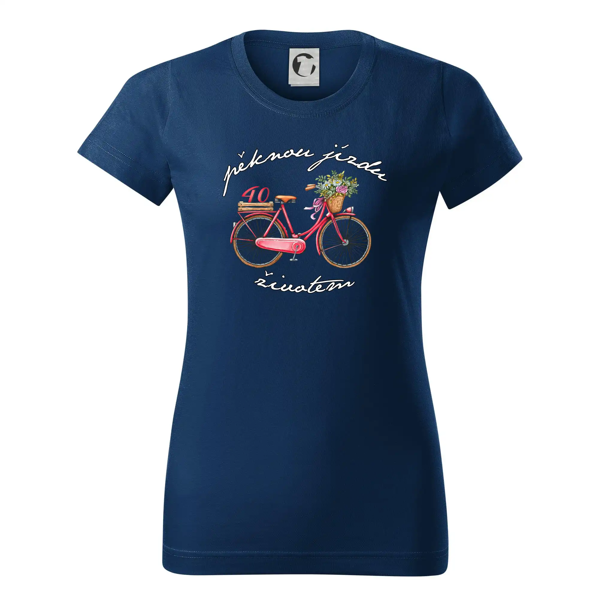 Narozeninové tričko pro babičku nebo tričko pro maminku, která slaví 40 let, s motem "pěknou jízdu životem". Stylové jízdní kolo na triku jako dárek na 40 narozeniny pro ženu. Triko pro babičku nebo triko pro maminku, která slaví jubileum 40 let.