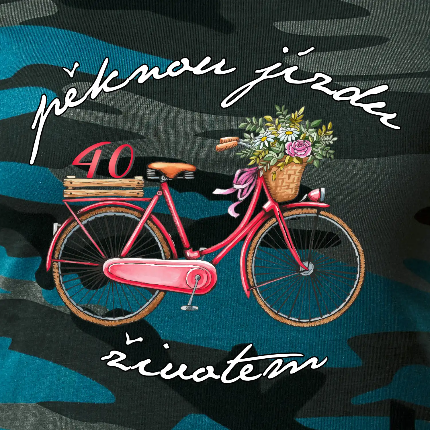 Narozeninové tričko pro babičku nebo tričko pro maminku, která slaví 40 let, s motem "pěknou jízdu životem". Stylové jízdní kolo na triku jako dárek na 40 narozeniny pro ženu. Triko pro babičku nebo triko pro maminku, která slaví jubileum 40 let.